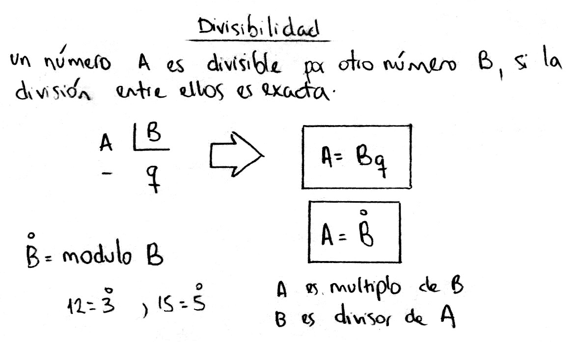 Definición: Un número A es divisible por otro número B, si la división entre ellos es exacta.