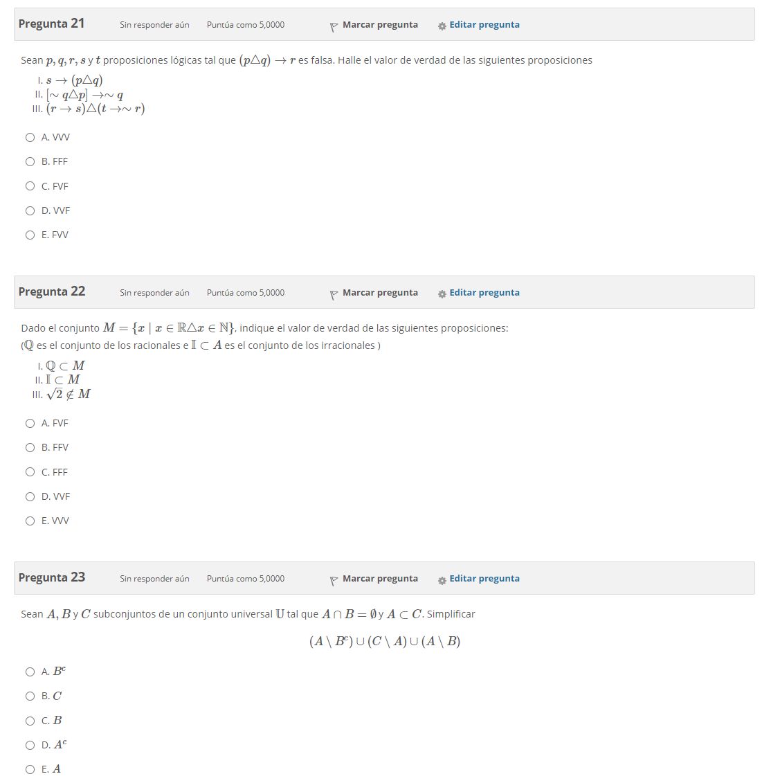 2020-2: 1c(analisis dimensional), 21d(lógica), 23B (conjuntos), 25e(lógica) | 35D(