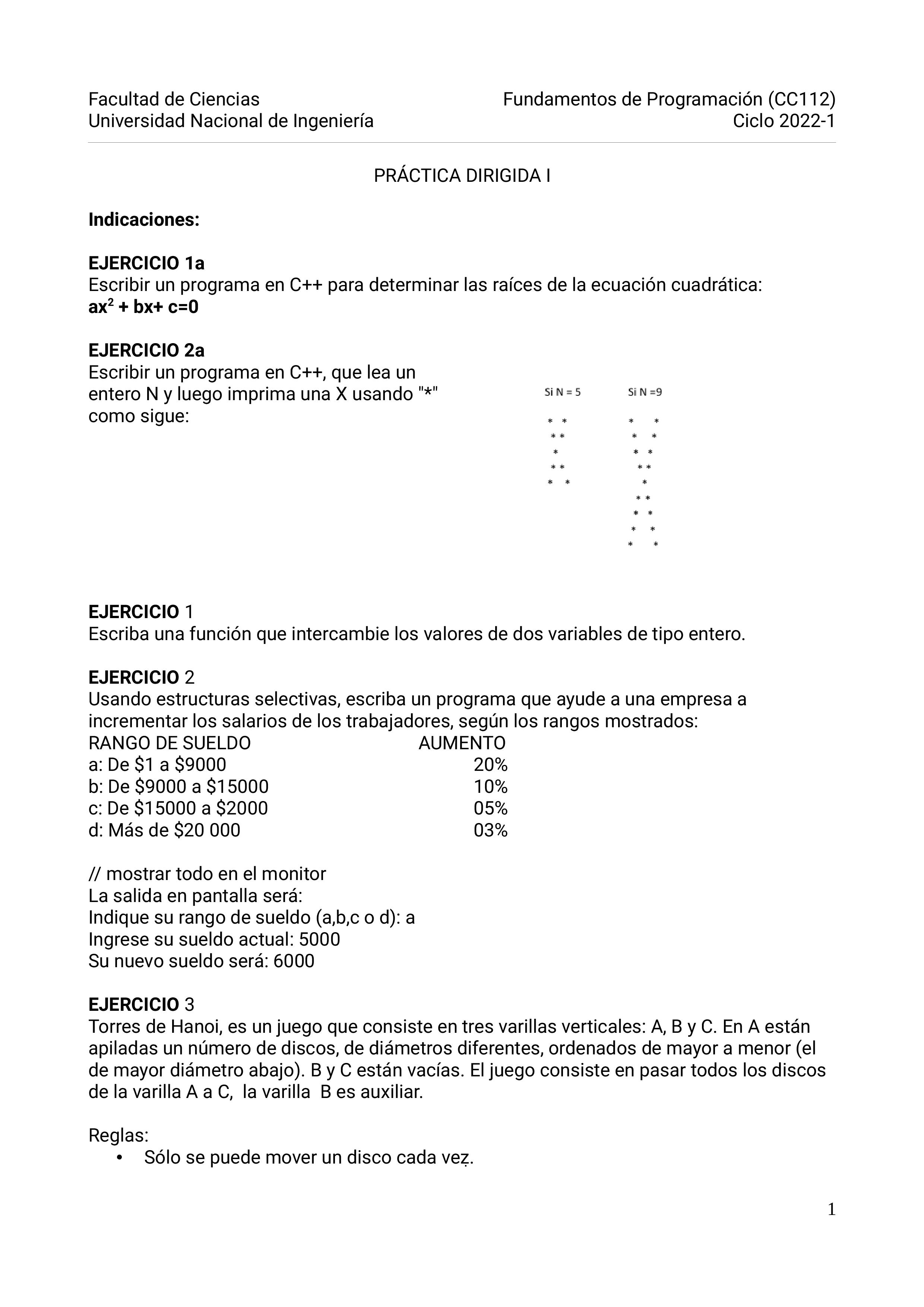 - (ejer. 2a: lea un entero N y luego imprima una X usando *),